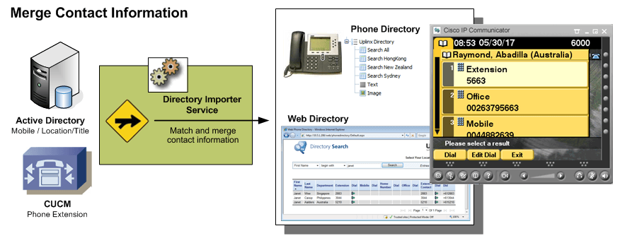 The Uplinx Enterprise Directory is a comprehensive solution to provide a consolidated, feature-rich directory to all Cisco IP phones in the enterprise and a web phone book with click to dial for the intranet.